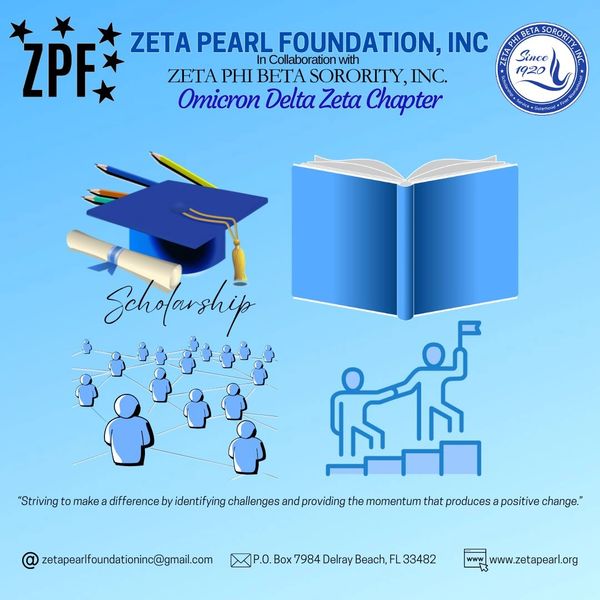 Zeta Pearl Foundation, Inc. is the 501(c)3 charitable arm of the Omicron Delta Zeta Chapter of Zeta Phi Beta Sorority, Inc., serving Boca Raton, Delray Beach, and Boynton Beach since 2003.